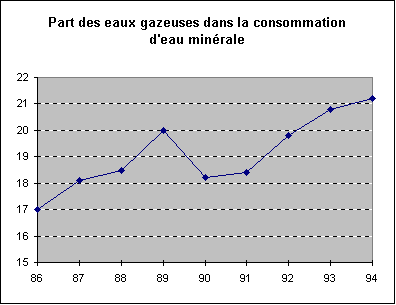 le début des années 90, la croissance des ventes d'eaux